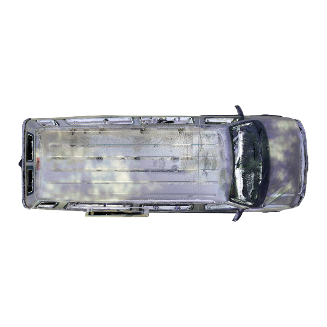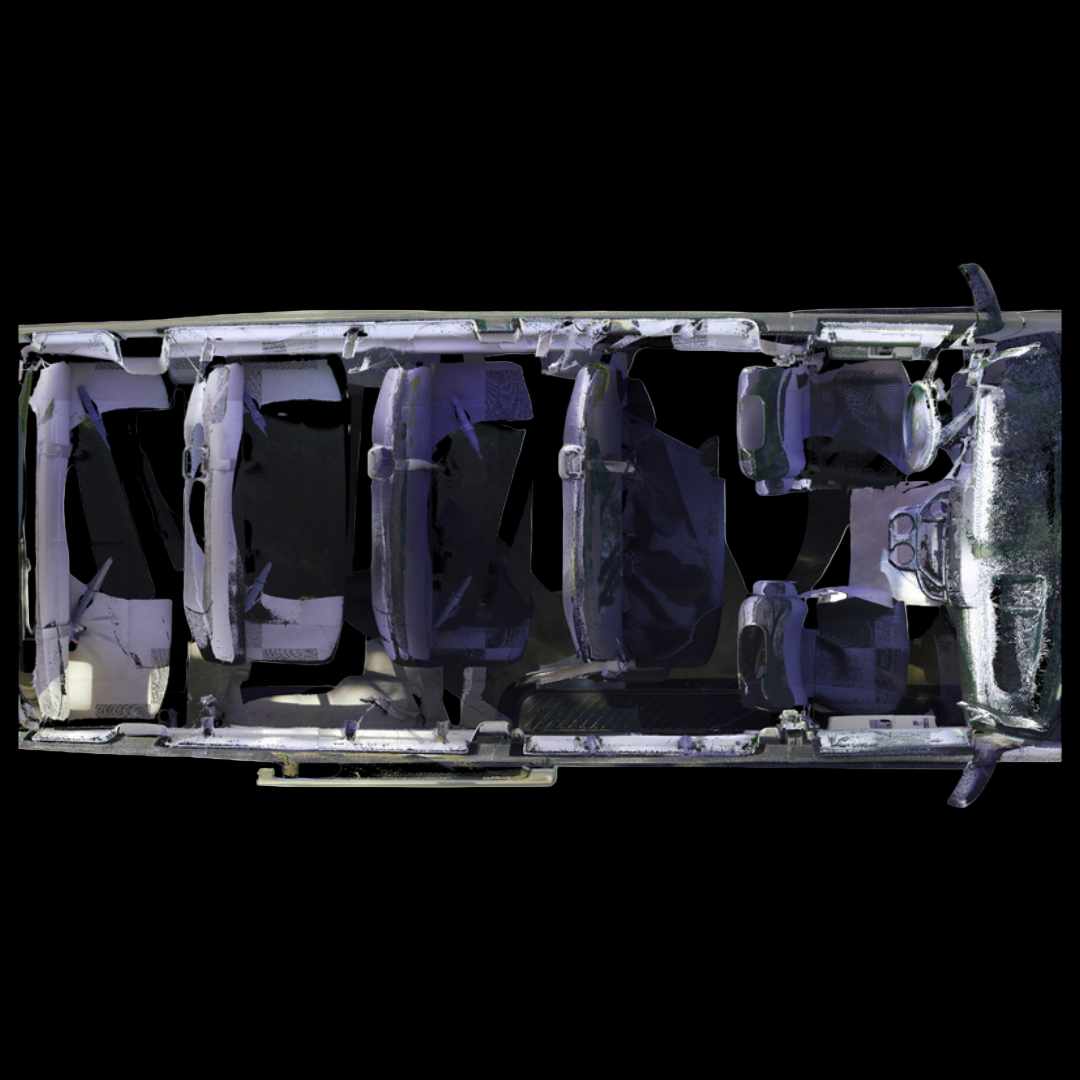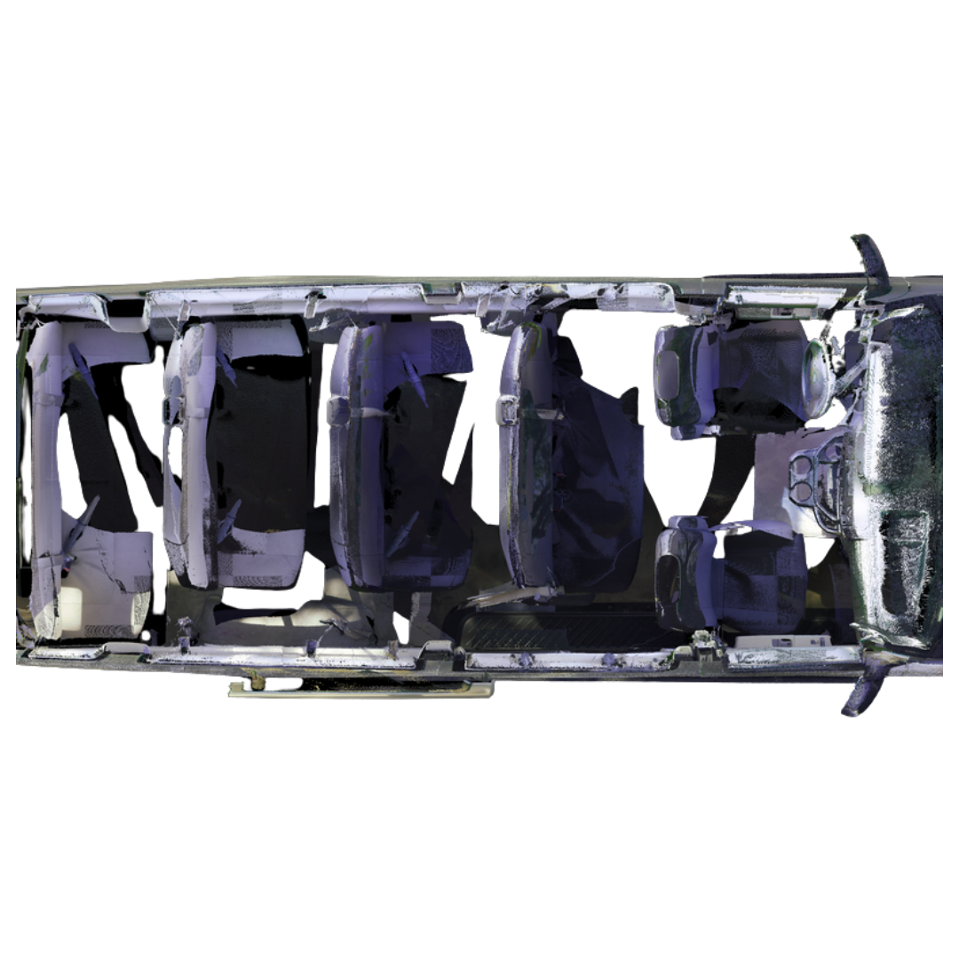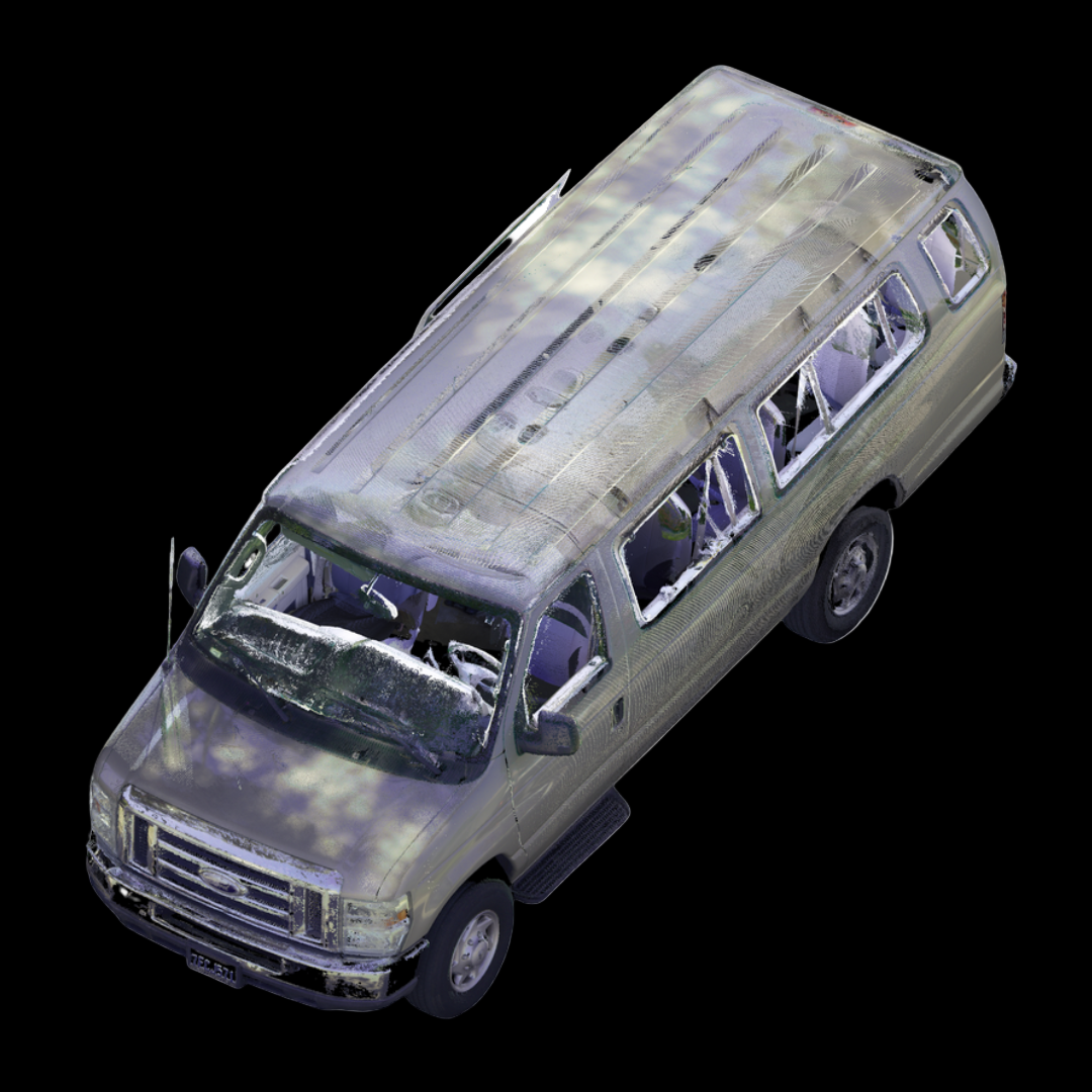 3D laser-scanned point cloud of a 2014 Ford E-350, including interior. Scan is an exemplar model with no/negligible damage in E57 file format.