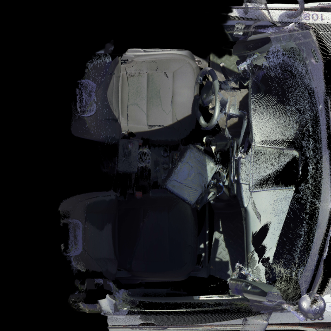 3D laser-scanned point cloud of a 2021 Ford Explorer Police Interceptor, including interior. Scan is an exemplar model with no/negligible damage in E57 file format.