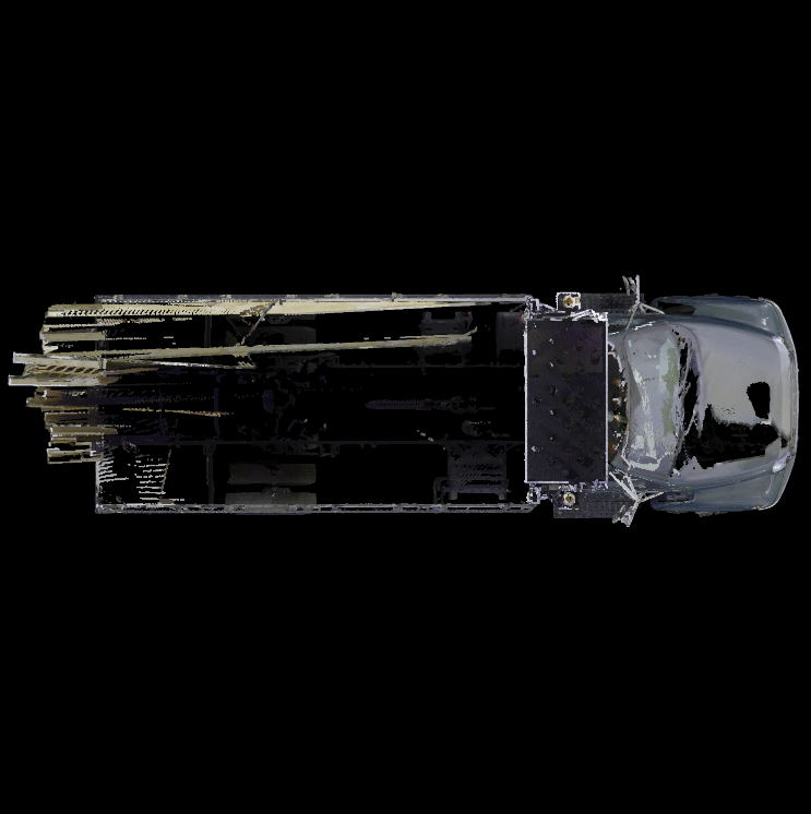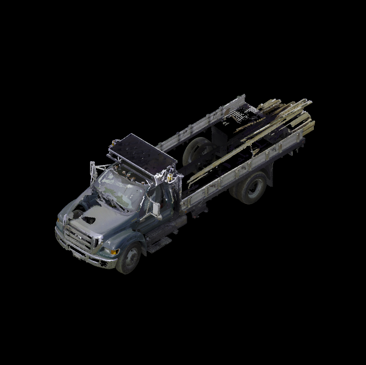 3D laser-scanned point cloud of a 2013 Ford F-650, including interior. Scan is an exemplar model with no/negligible damage in E57 file format.