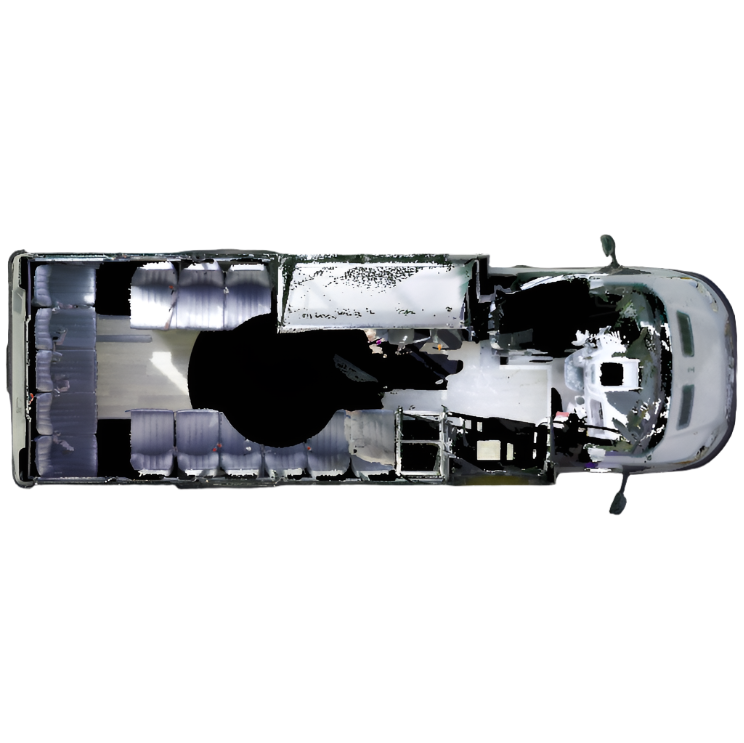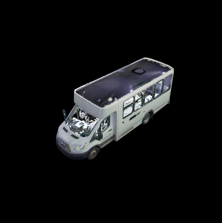 3D laser-scanned point cloud of a 2019 Ford Transit, including interior. Scan is an exemplar model with no/negligible damage in E57 file format.