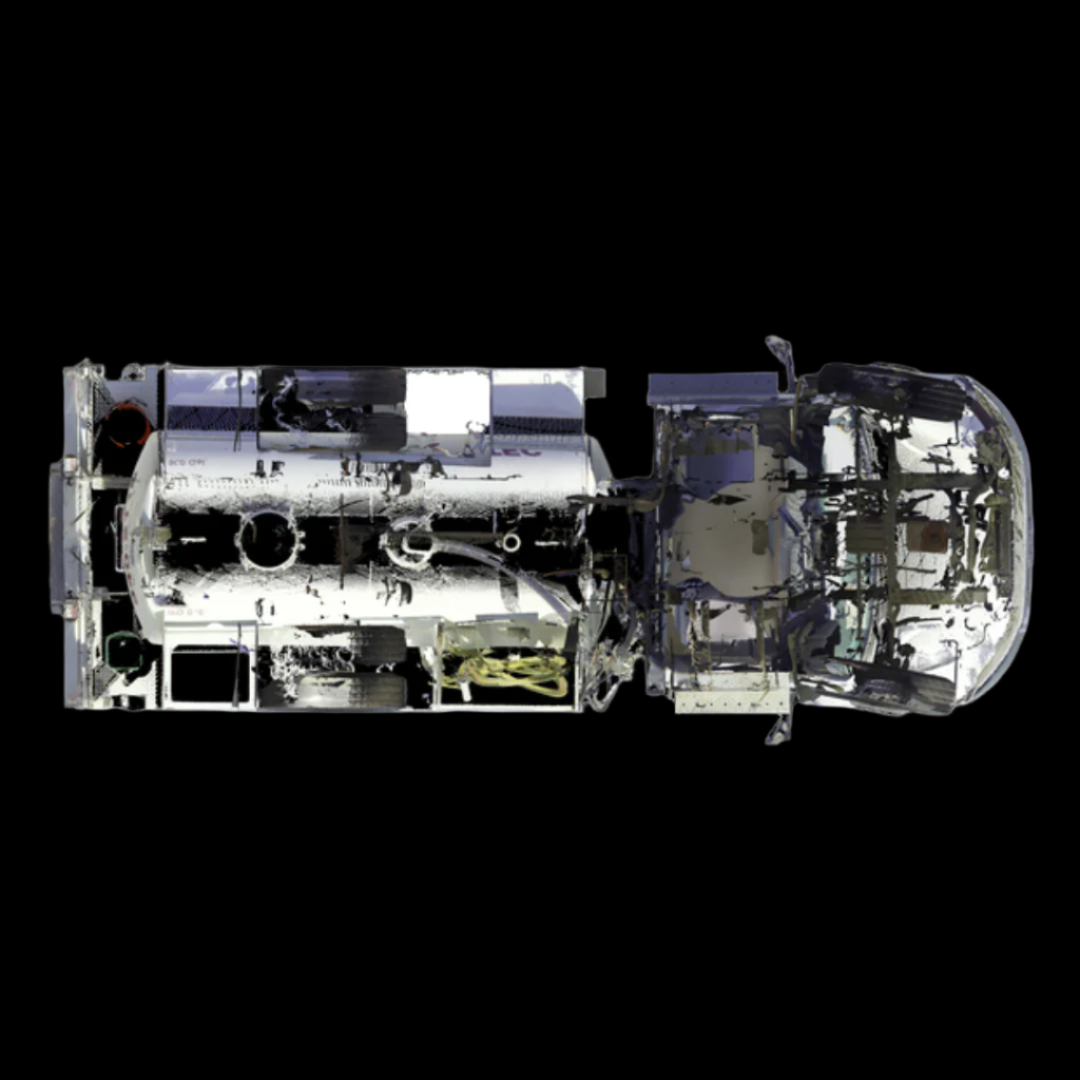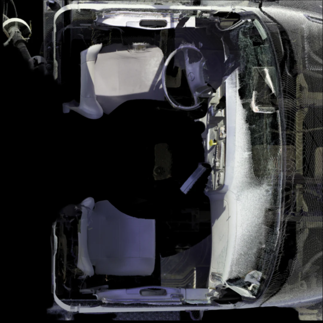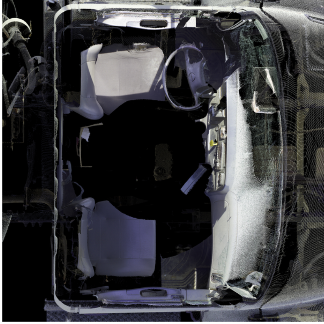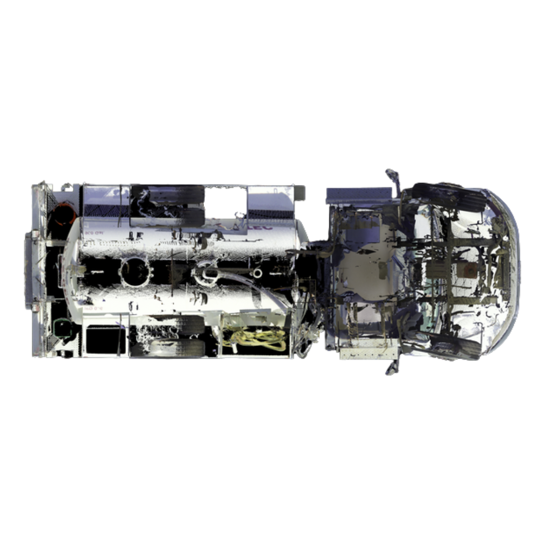 3D laser-scanned point cloud of a 2019 Freightliner M2 Tanker, including interior. Scan is an exemplar model with no/negligible damage in E57 file format.