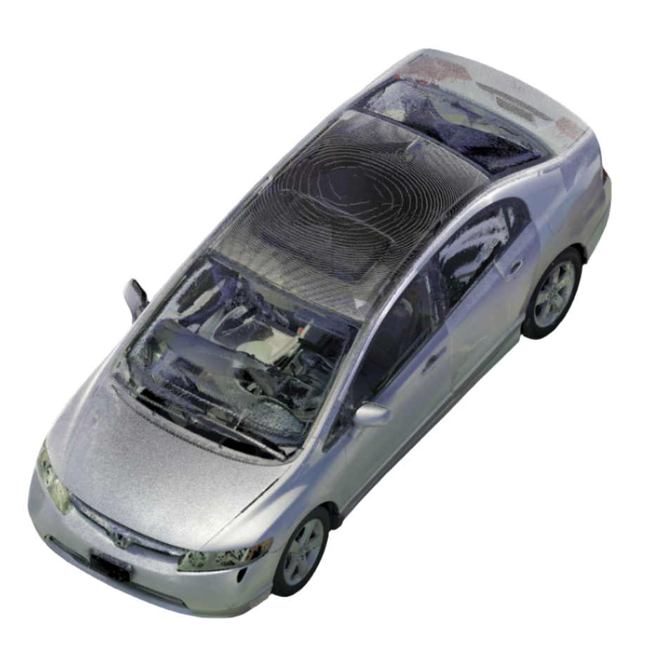 3D laser-scanned point cloud of a 2006 Honda Civic, including interior. Scan is an exemplar model with no/negligible damage in E57 file format.