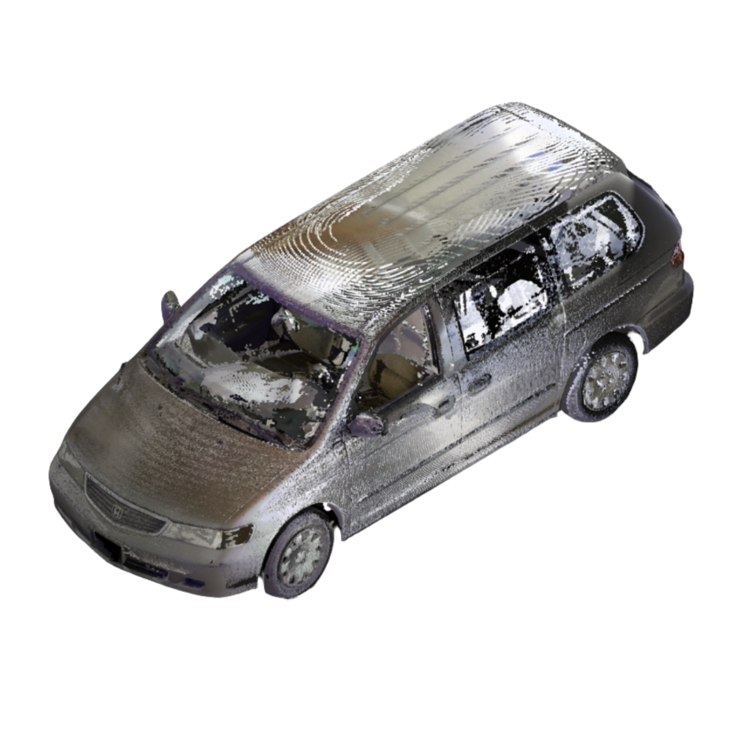 3D laser-scanned point cloud of a 2000 Honda Odyssey, including interior. Scan is an exemplar model with no/negligible damage in E57 file format.