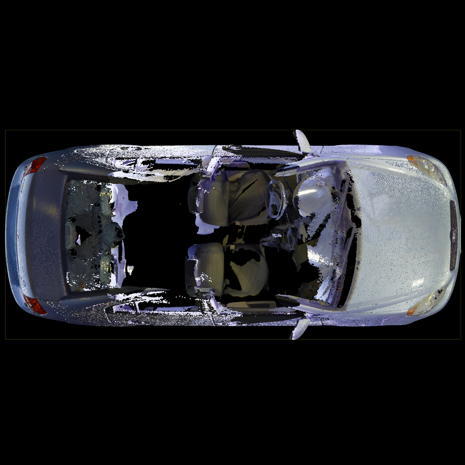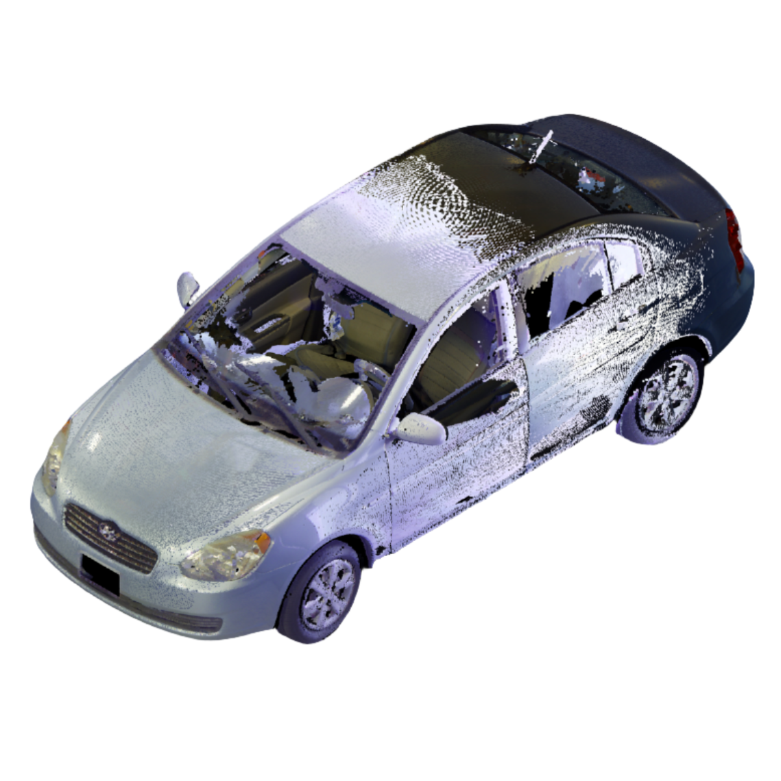 3D laser-scanned point cloud of a 2011 Hyundai Accent, including interior. Scan is an exemplar model with no/negligible damage in E57 file format.