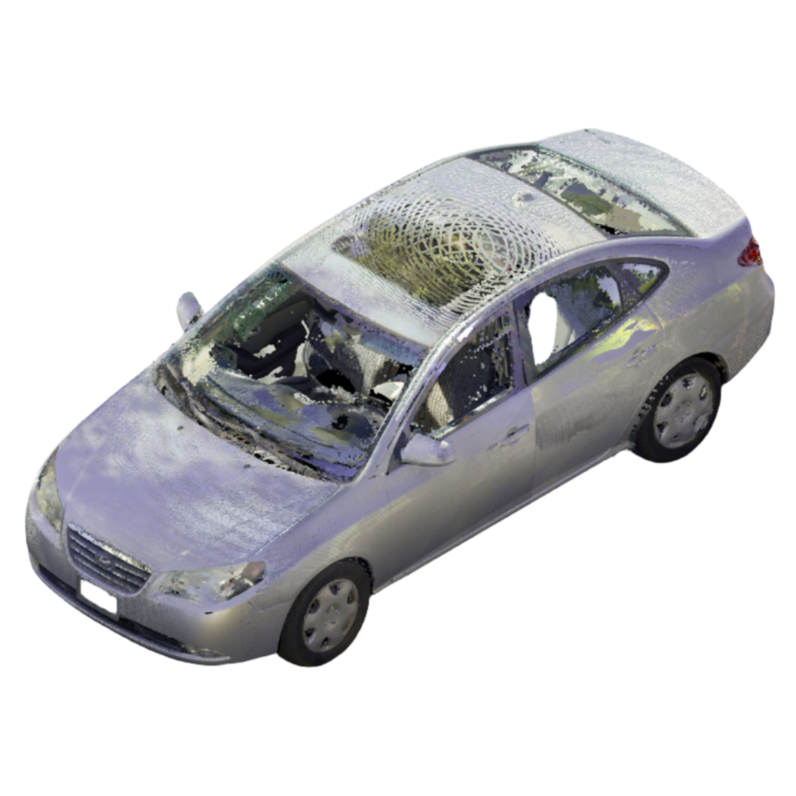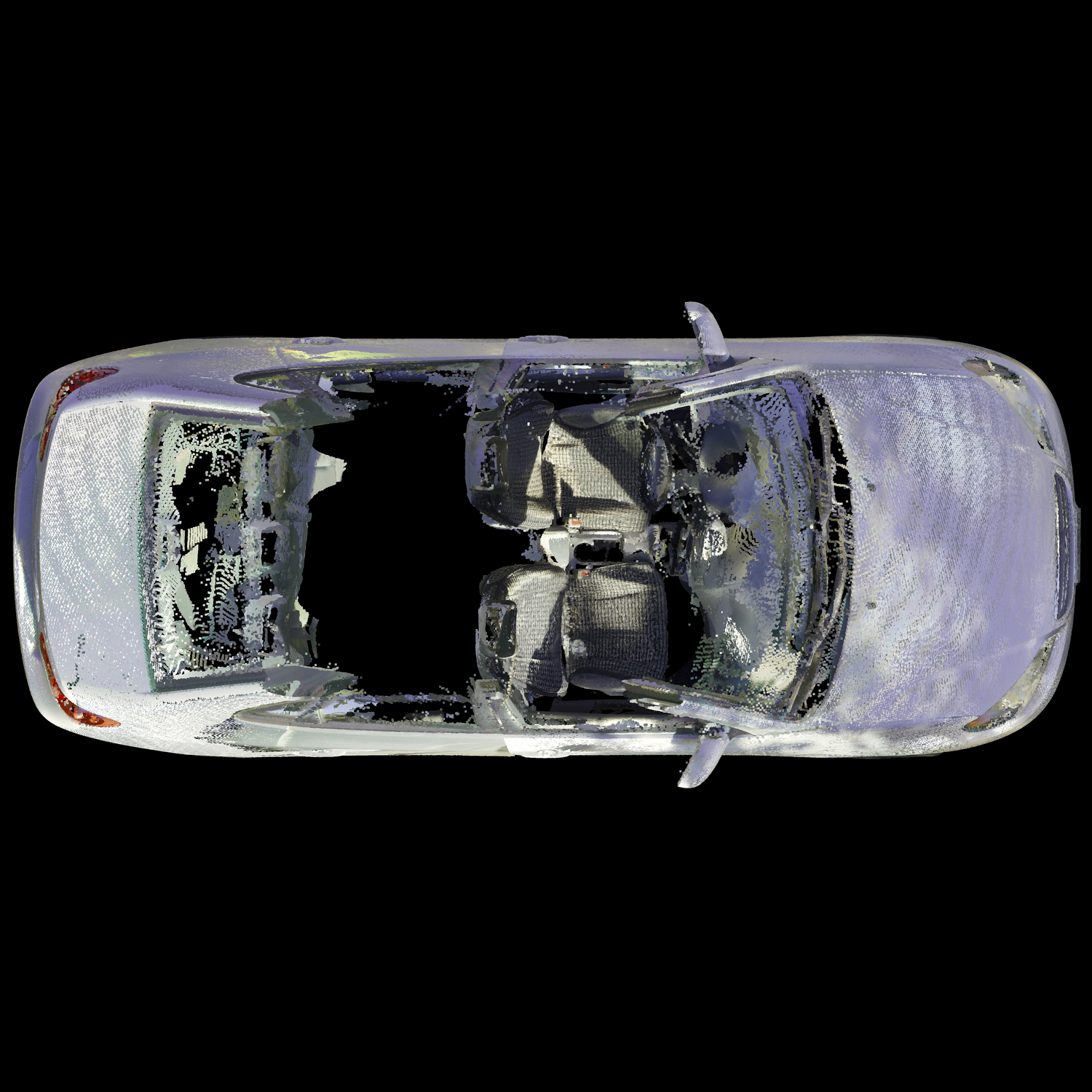3D laser-scanned point cloud of a 2008 Hyundai Elantra, including interior. Scan is an exemplar model with no/negligible damage in E57 file format.