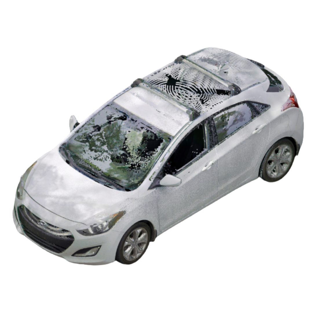 3D laser-scanned point cloud of a 2013 Hyundai Elantra, including interior. Scan is an exemplar model with no/negligible damage in E57 file format.
