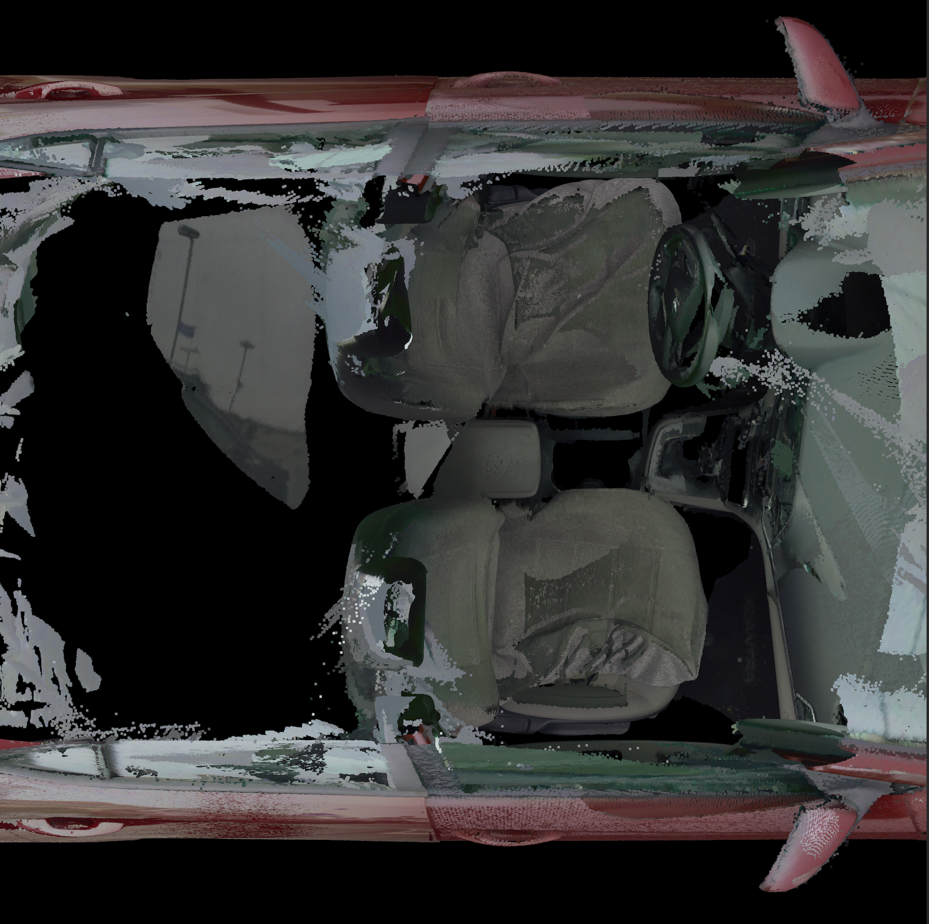 3D laser-scanned point cloud of a 2017 Hyundai Elantra, including interior. Scan is an exemplar model with no/negligible damage in E57 file format.