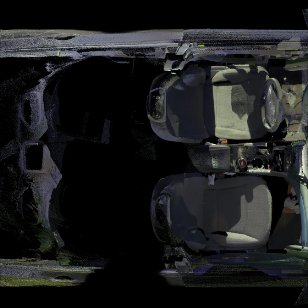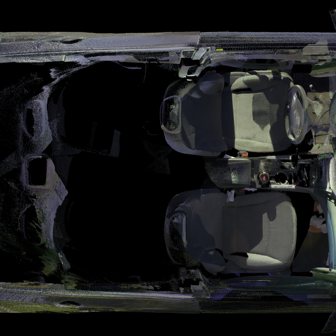 3D laser-scanned point cloud of a 2013 Hyundai Sonata, including interior. Scan is an exemplar model with no/negligible damage in E57 file format.
