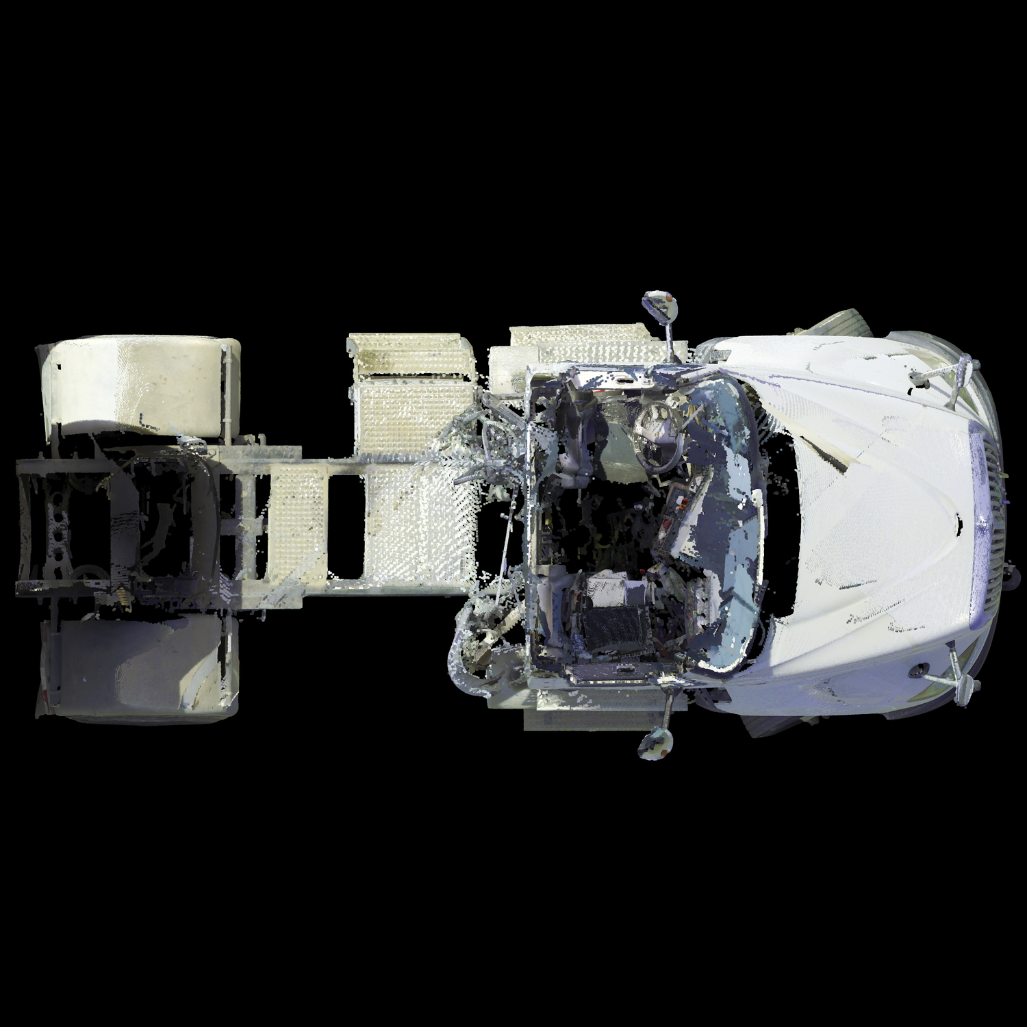 3D laser-scanned point cloud of a 2011 International LA627, including interior. Scan is an exemplar model with no/negligible damage in E57 file format.