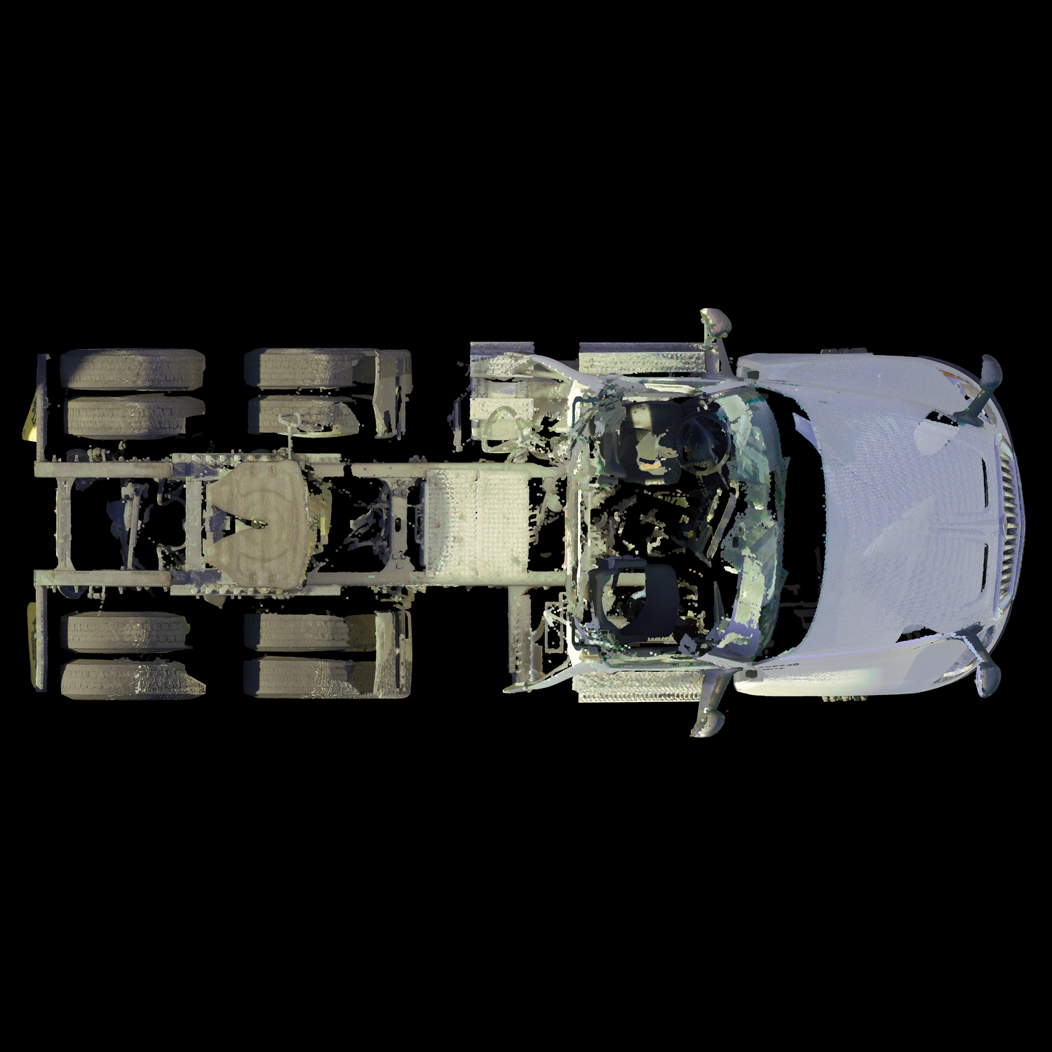 3D laser-scanned point cloud of a 2020 International LT625, including interior. Scan is an exemplar model with no/negligible damage in E57 file format.