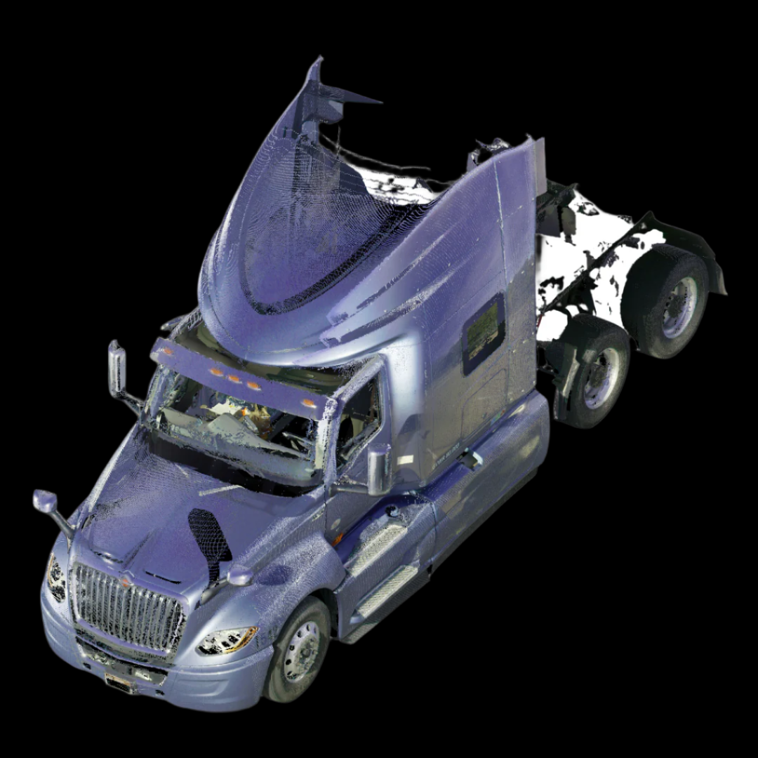 3D laser-scanned point cloud of a 2020 International LT625, including interior. Scan is an exemplar model with no/negligible damage in E57 file format.