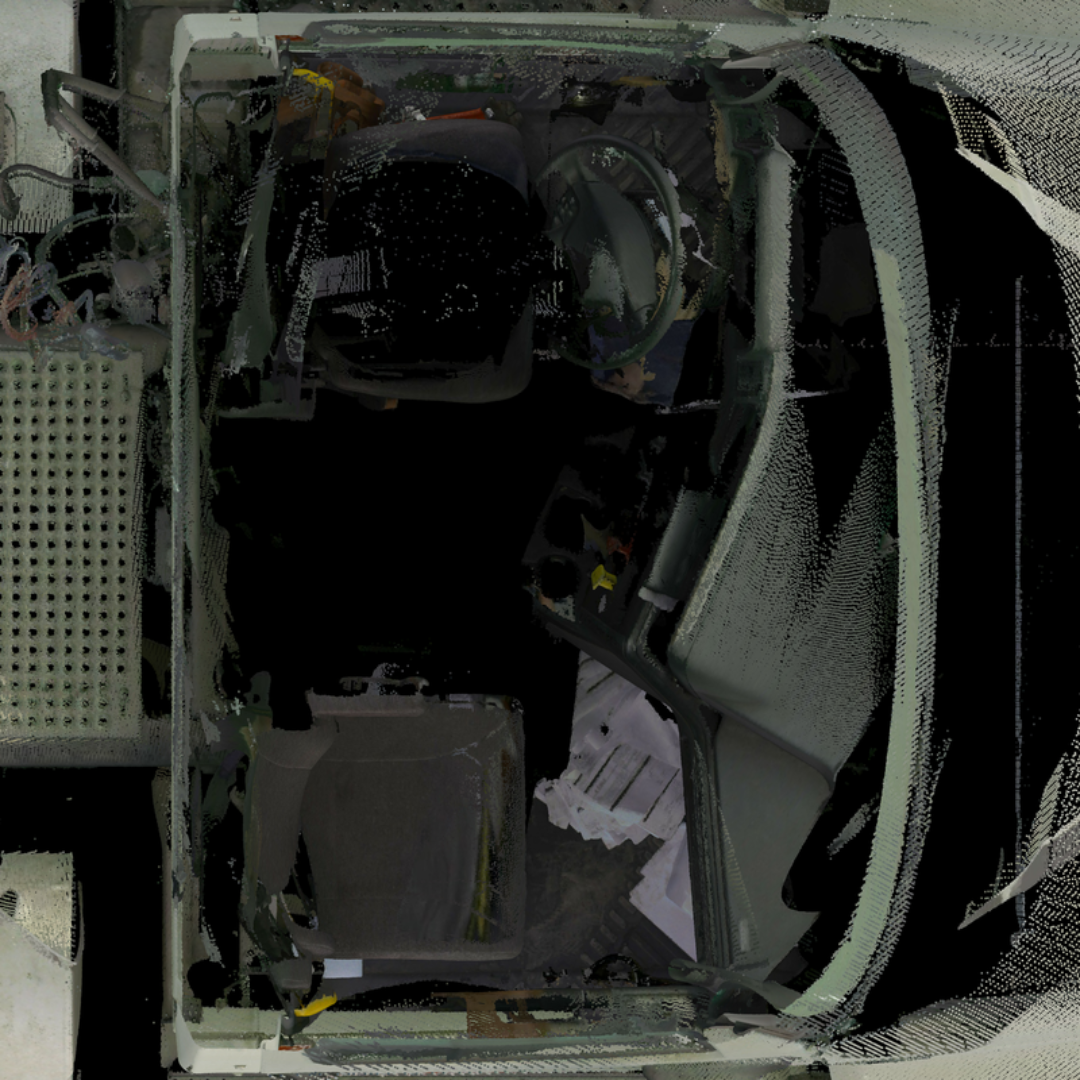 3D laser-scanned point cloud of a 2024 International LT62F, including interior. Scan is an exemplar model with no/negligible damage in E57 file format.