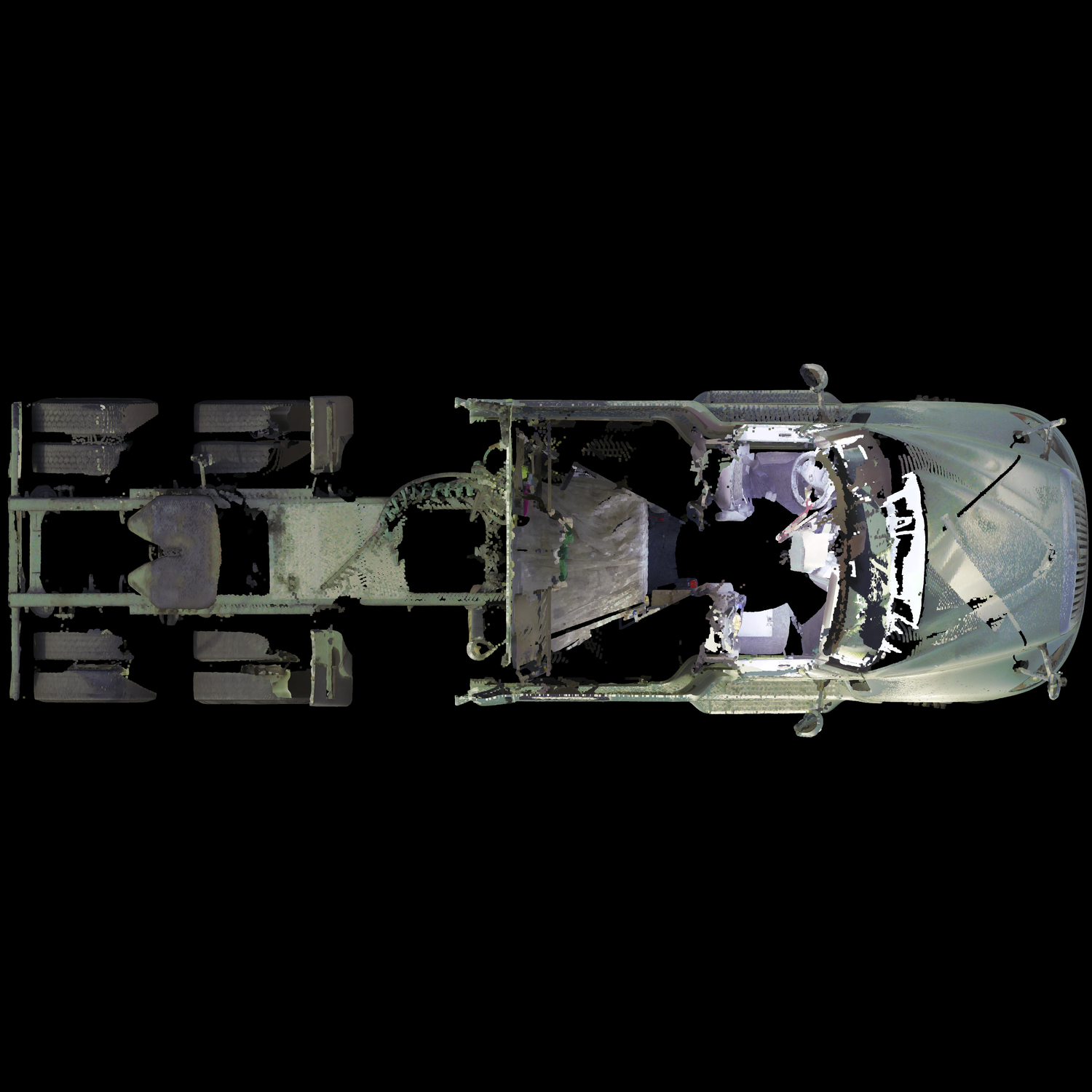 3D laser-scanned point cloud of a 2012 International ProStar LF687, including interior. Scan is an exemplar model with no/negligible damage in E57 file format.