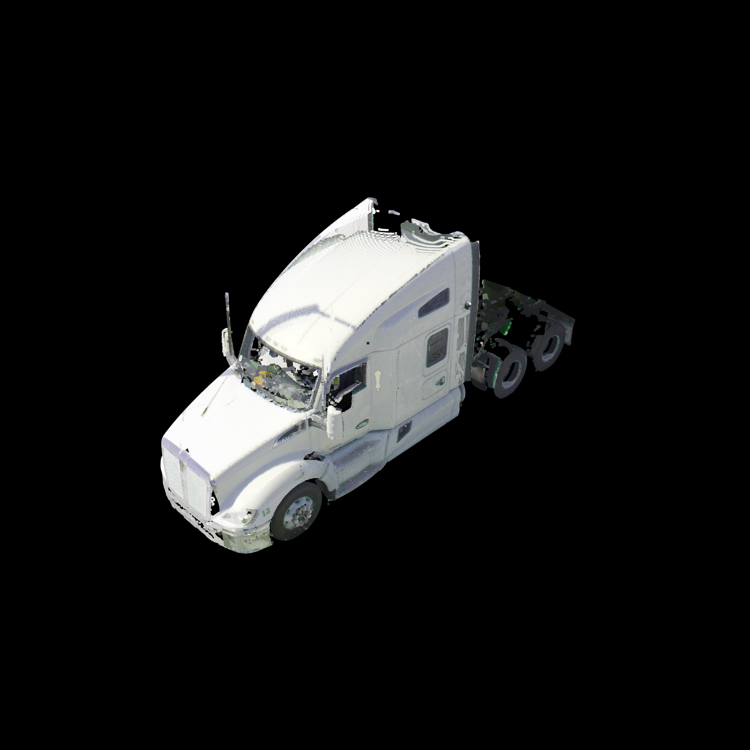 3D laser-scanned point cloud of a 2014 Kenworth T680, including interior. Scan is an exemplar model with no/negligible damage in E57 file format.