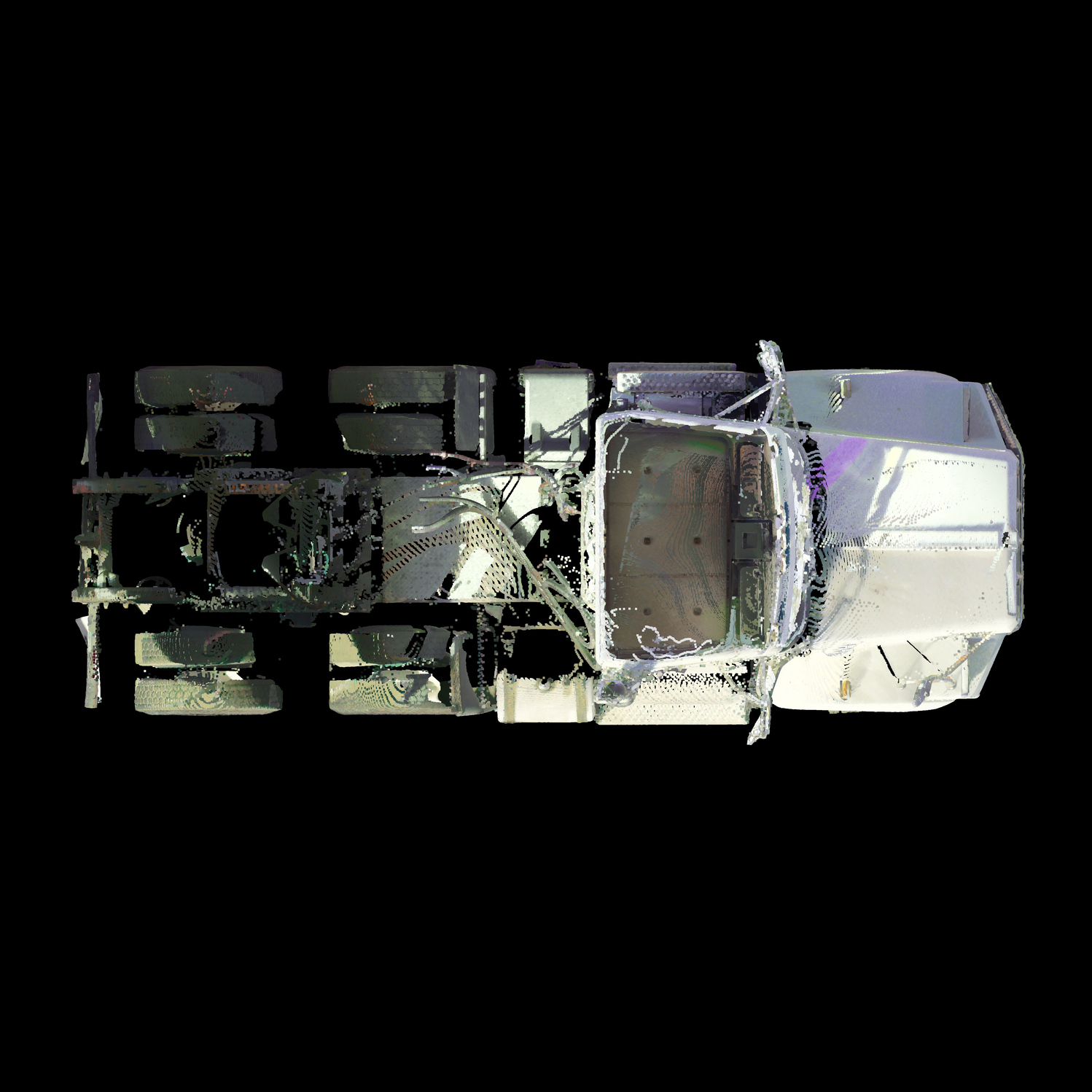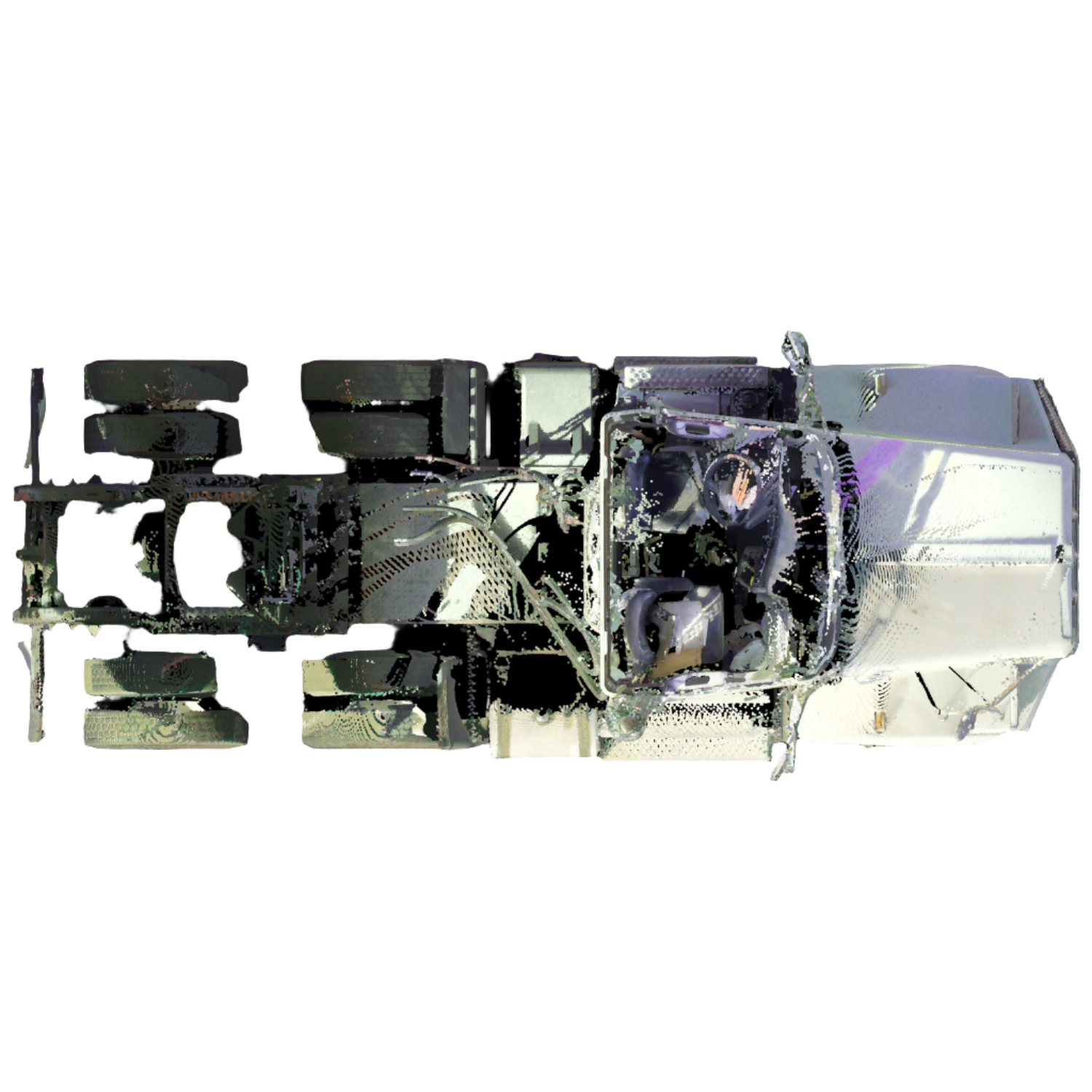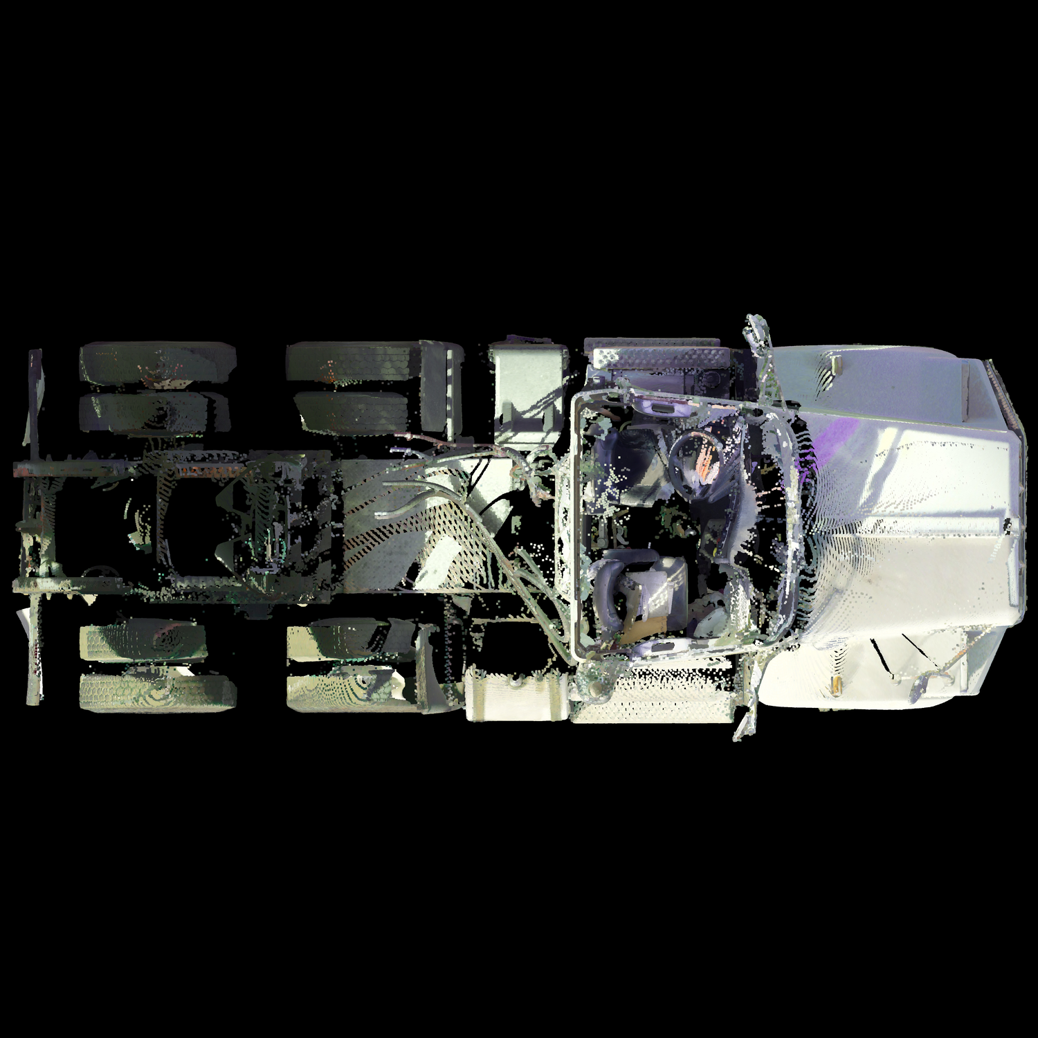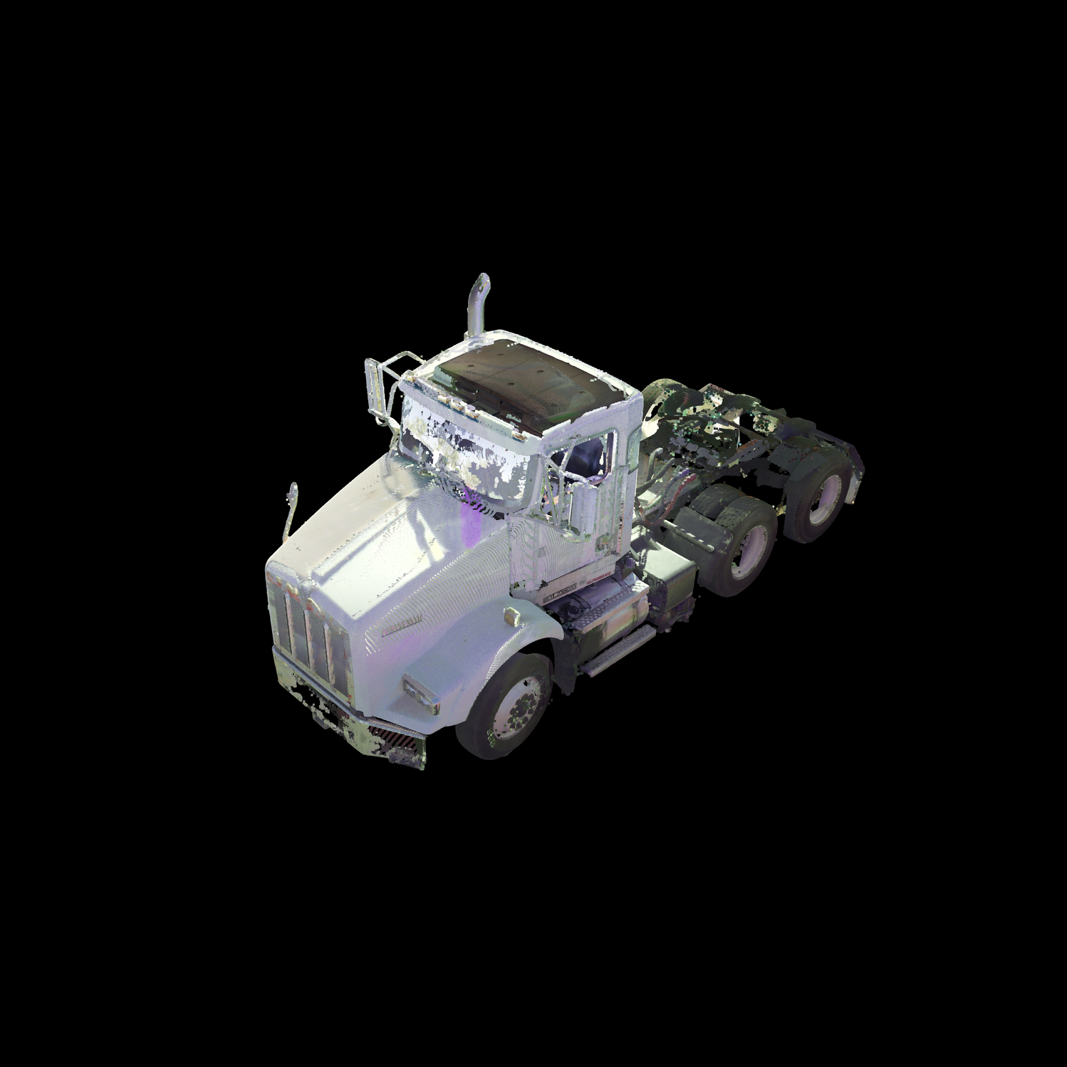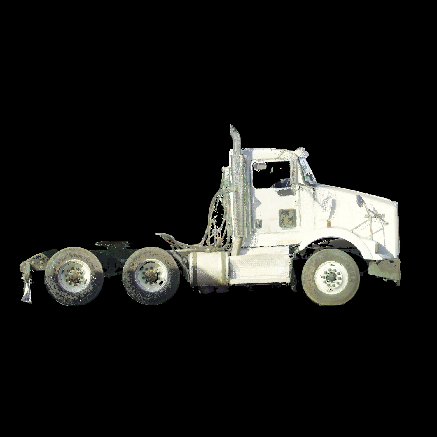3D laser-scanned point cloud of a 2015 Kenworth T8 Series, including interior. Scan is an exemplar model with no/negligible damage in E57 file format.