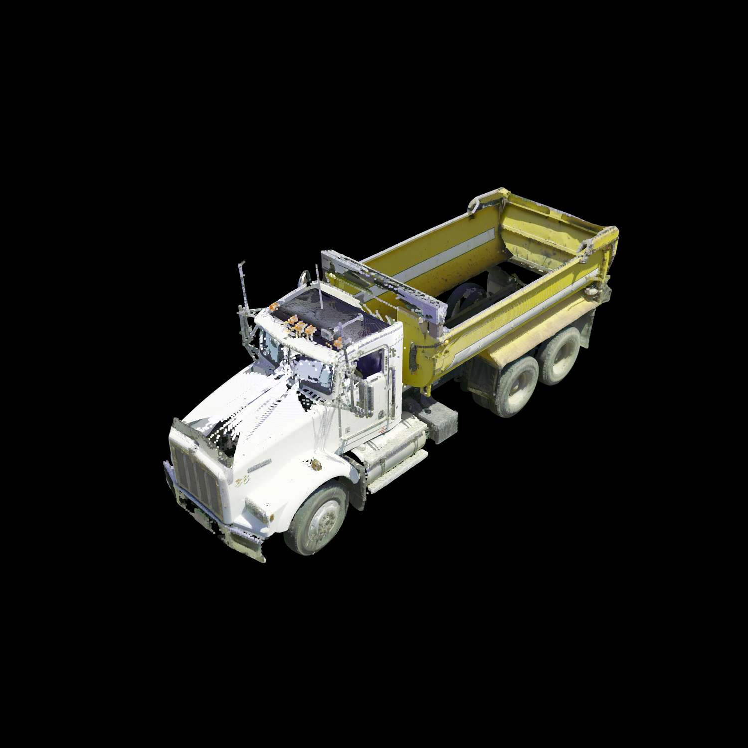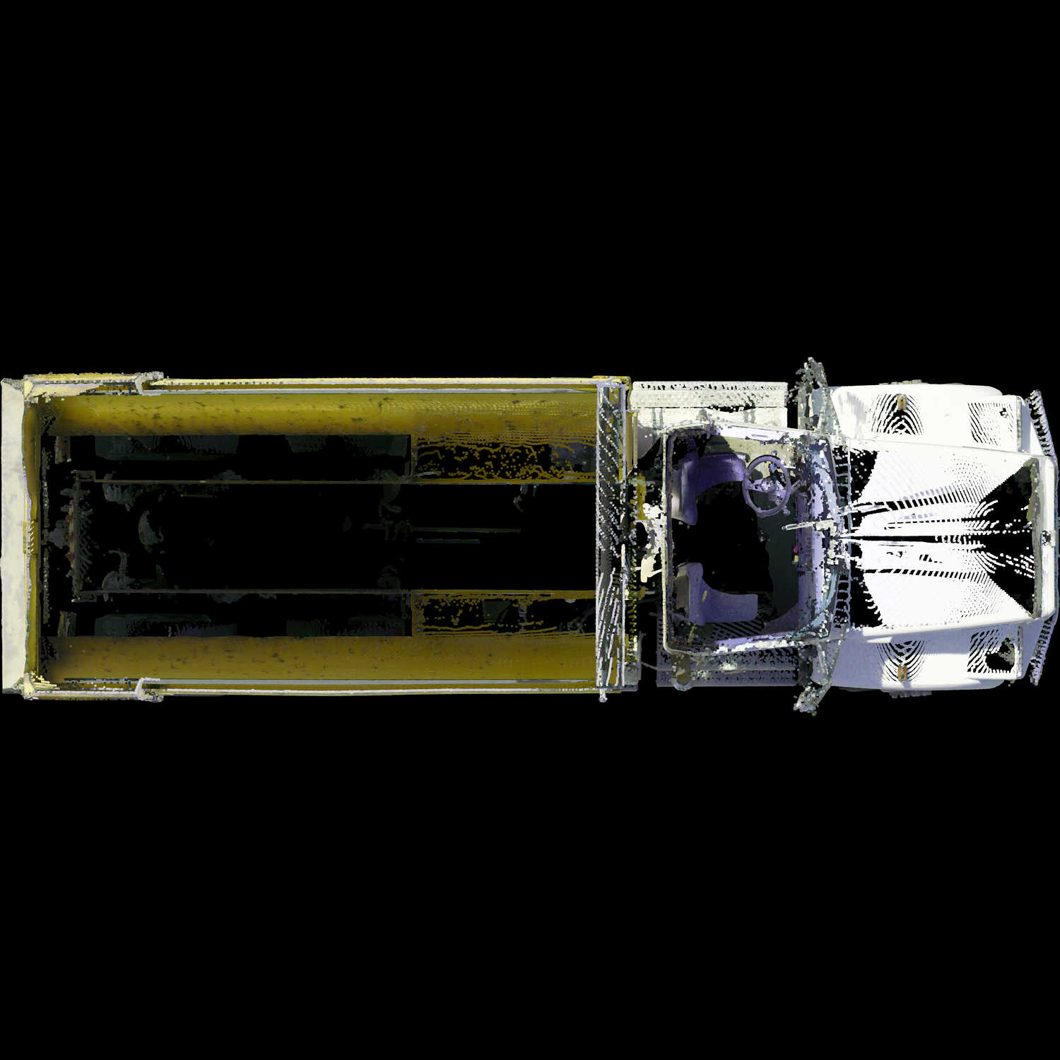 3D laser-scanned point cloud of a 1995 Kenworth T800, including interior. Scan is an exemplar model with no/negligible damage in E57 file format.