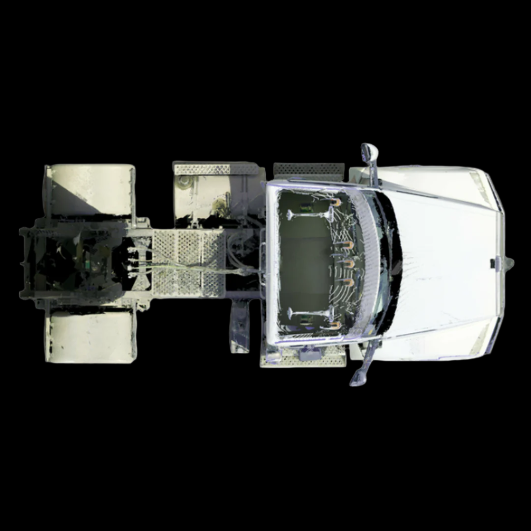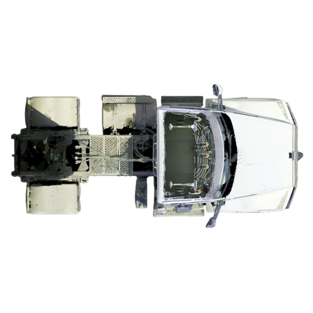3D laser-scanned point cloud of a 2016 Kenworth T880, including interior and undercarriage. Scan is an exemplar model with no/negligible damage in E57 file format.