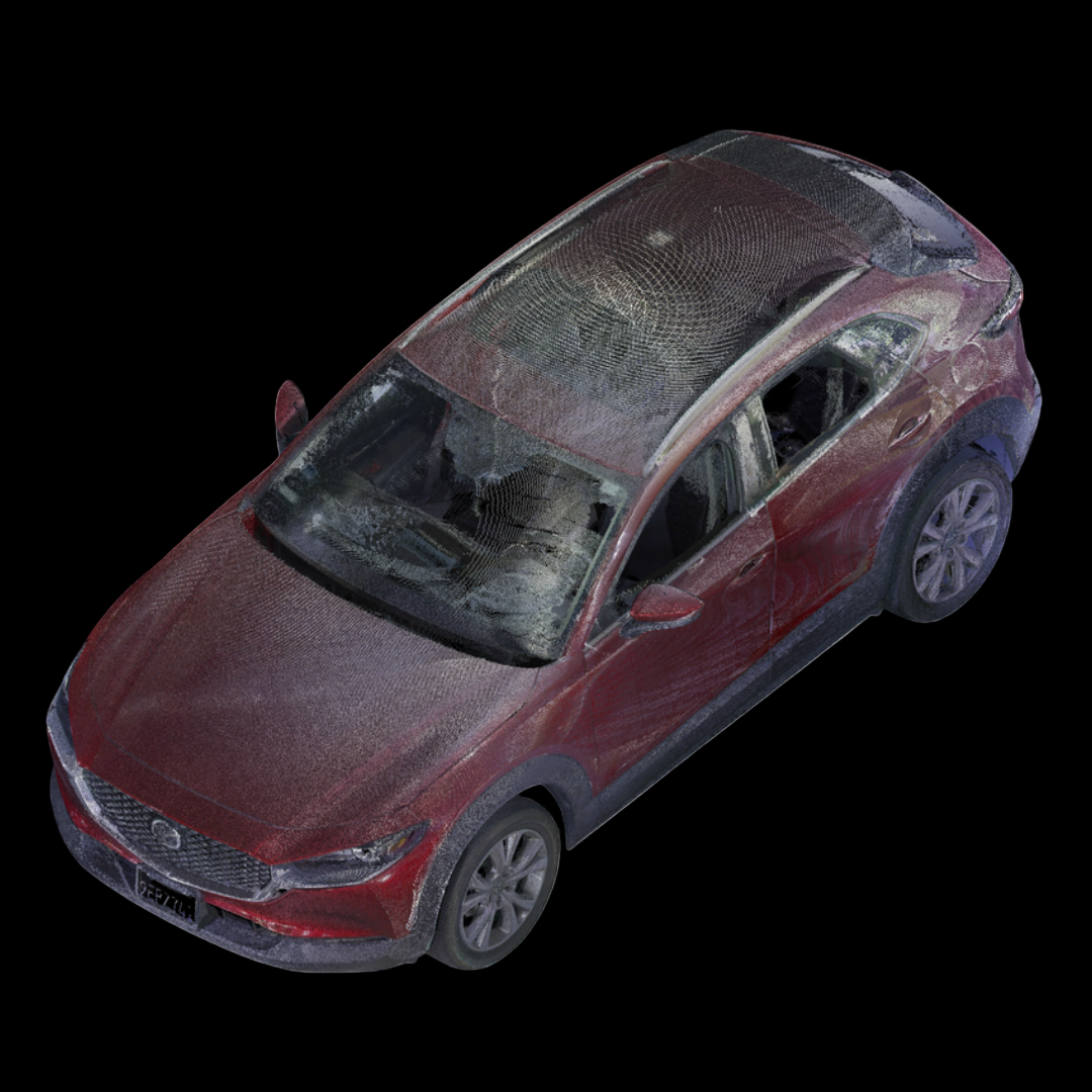 3D laser-scanned point cloud of a 2022 Mazda CX-30, including interior. Scan is an exemplar model with no/negligible damage in E57 file format.
