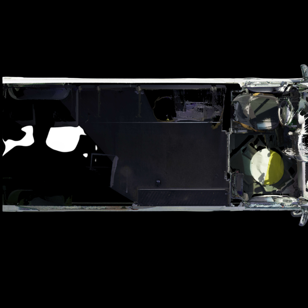 3D laser-scanned point cloud of a 2011 Mercedes-Benz Sprinter, including interior. Scan is an exemplar model with no/negligible damage in E57 file format.