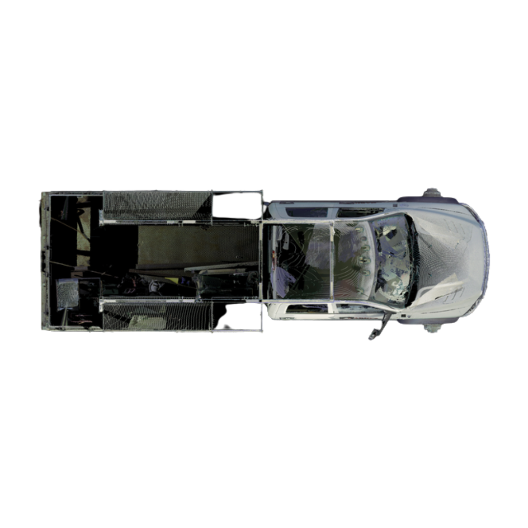 3D laser-scanned point cloud of a 2018 RAM 2500 dually chassis cab with service bed, including interior and portion of the undercarriage–see pics. Scan is an exemplar model with no/negligible damage in E57 file format.