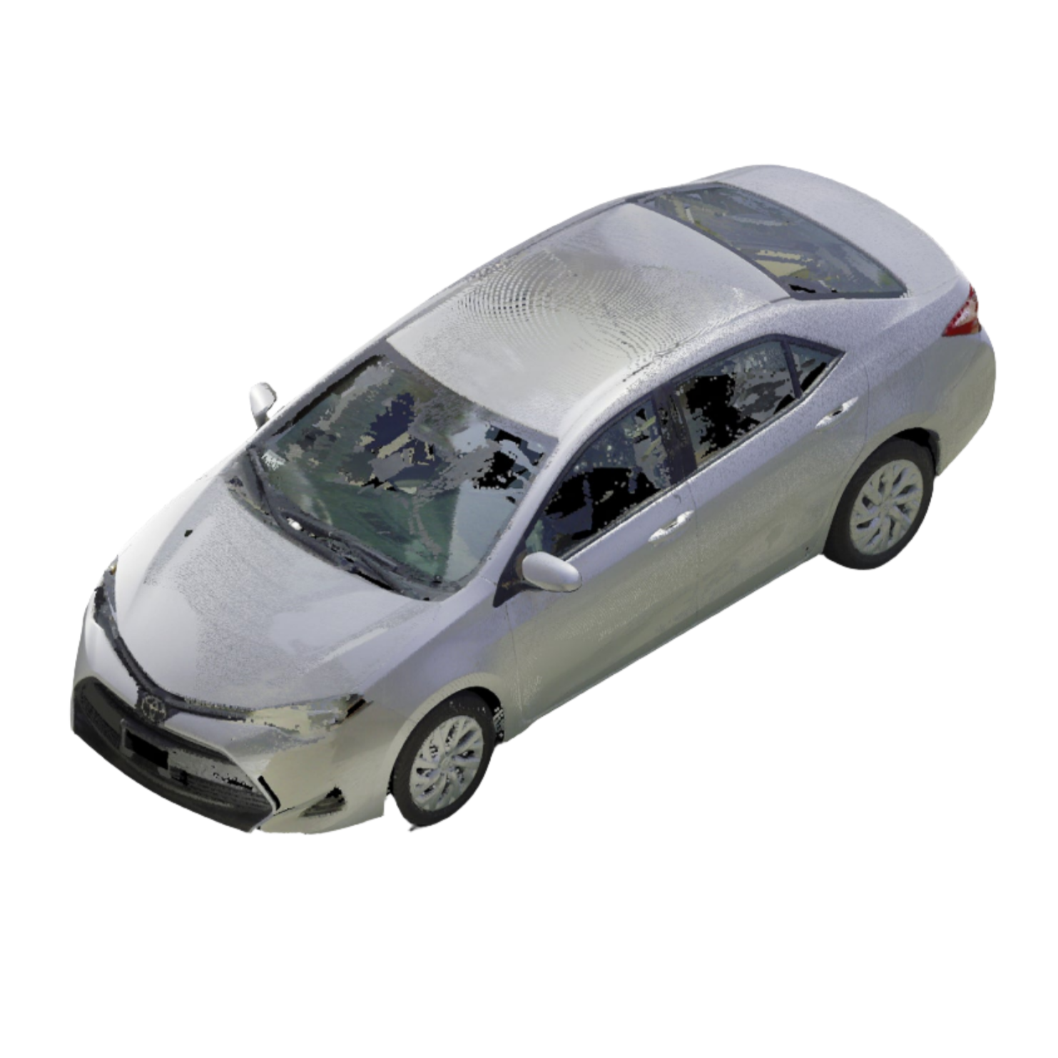 3D laser-scanned point cloud of a 2017 Toyota Corolla. Scan is an exemplar model with no/negligible damage in E57 file format.
