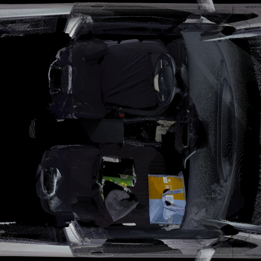 3D laser-scanned point cloud of a 2019 Toyota Prius Prime, including interior. Scan is an exemplar model with no/negligible damage in E57 file format.
