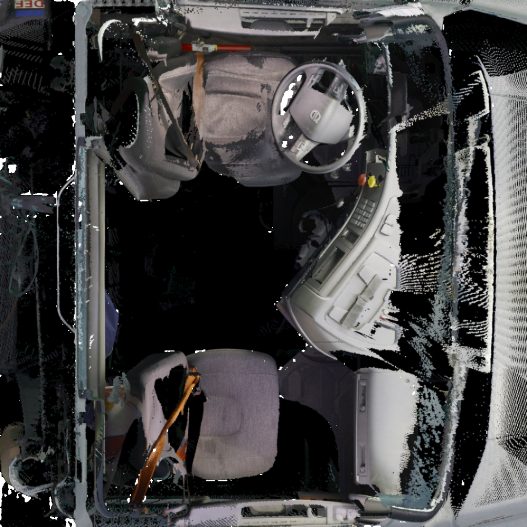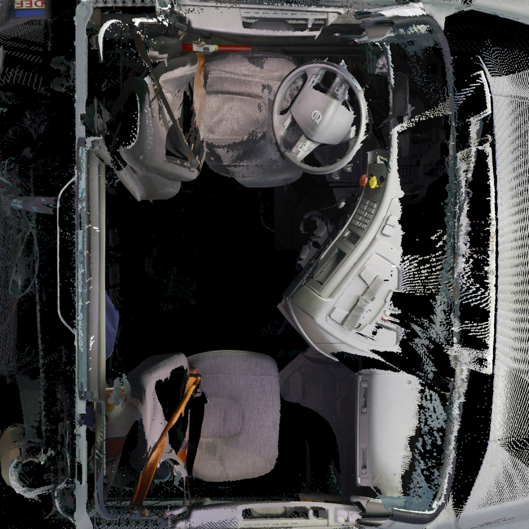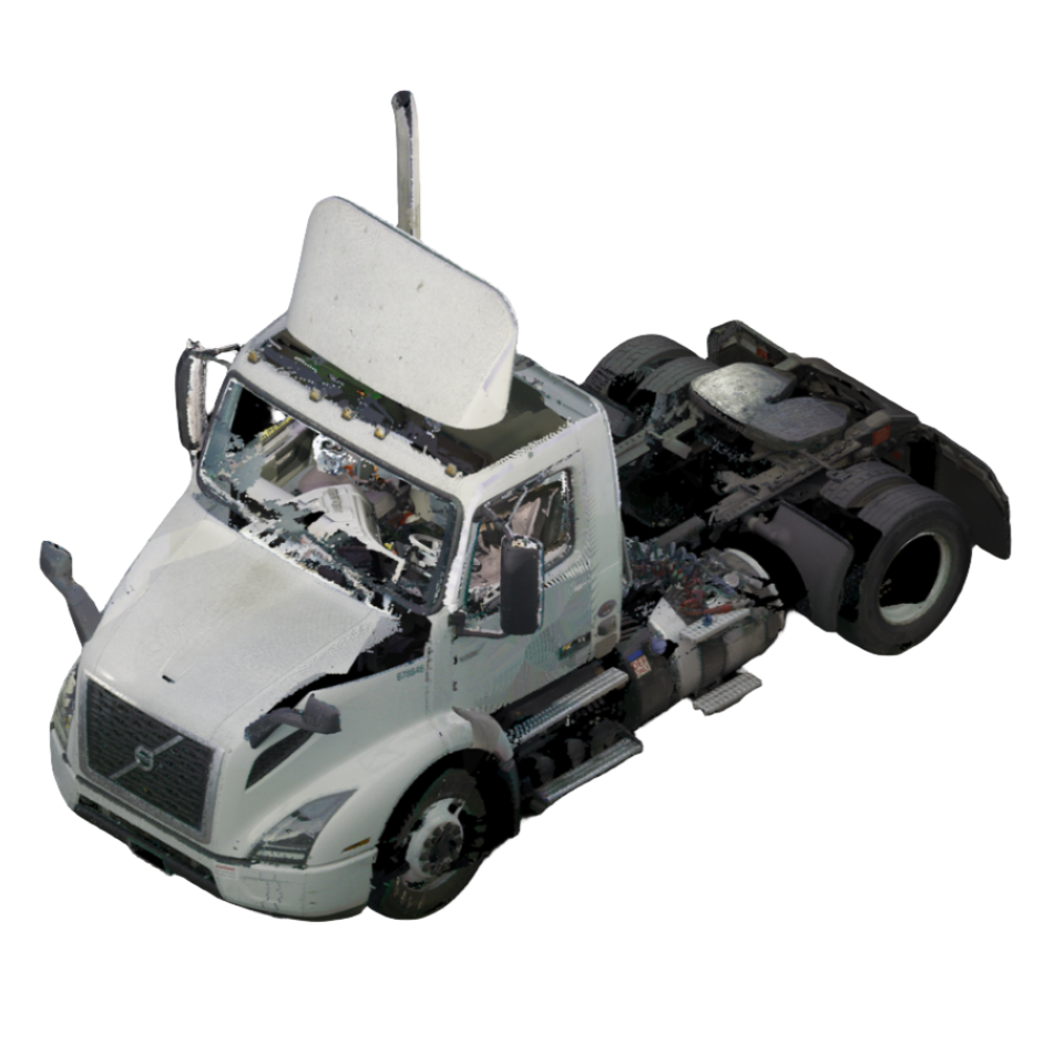 3D laser-scanned point cloud of a 2019 Volvo VNR, including interior. Scan is an exemplar model with no/negligible damage in E57 file format.