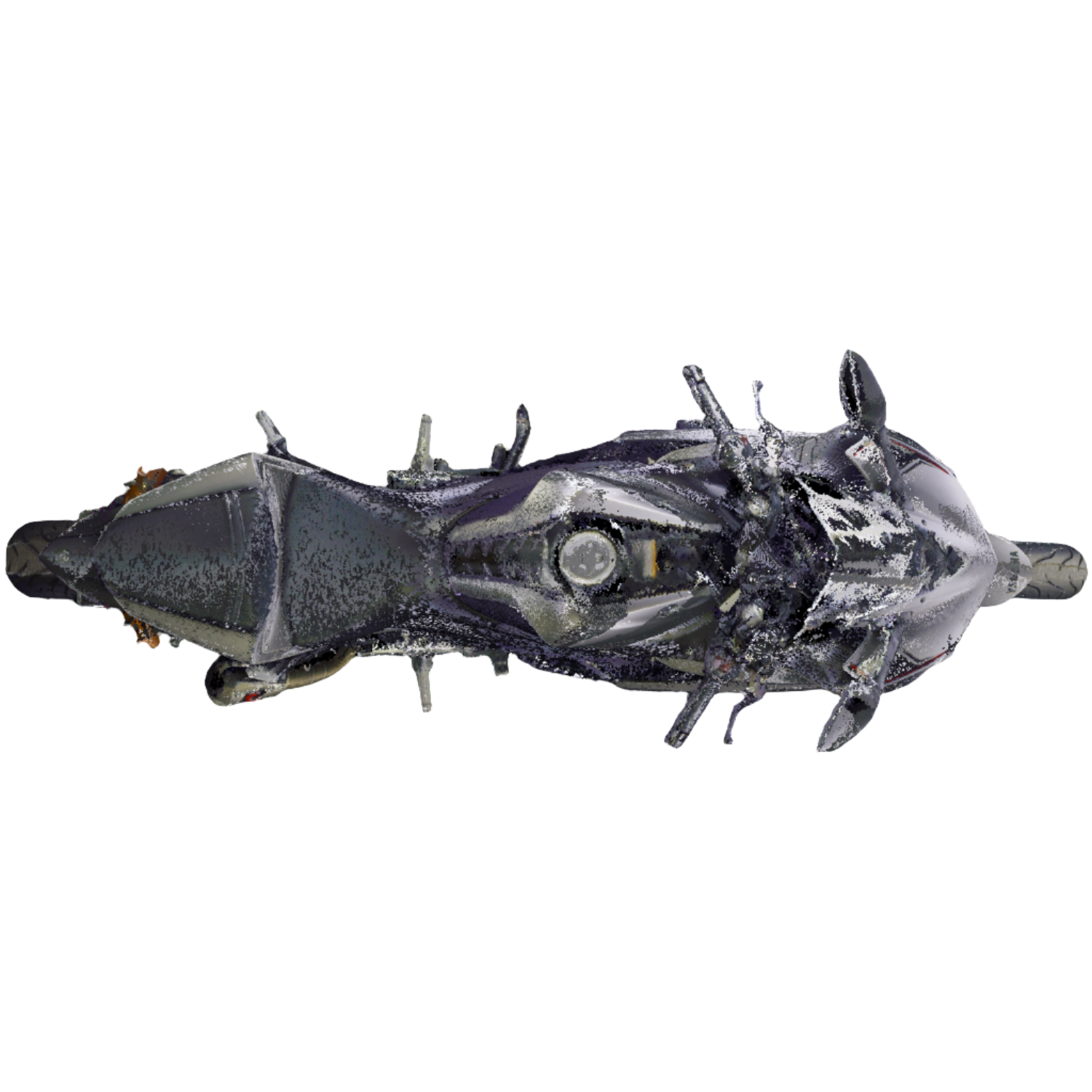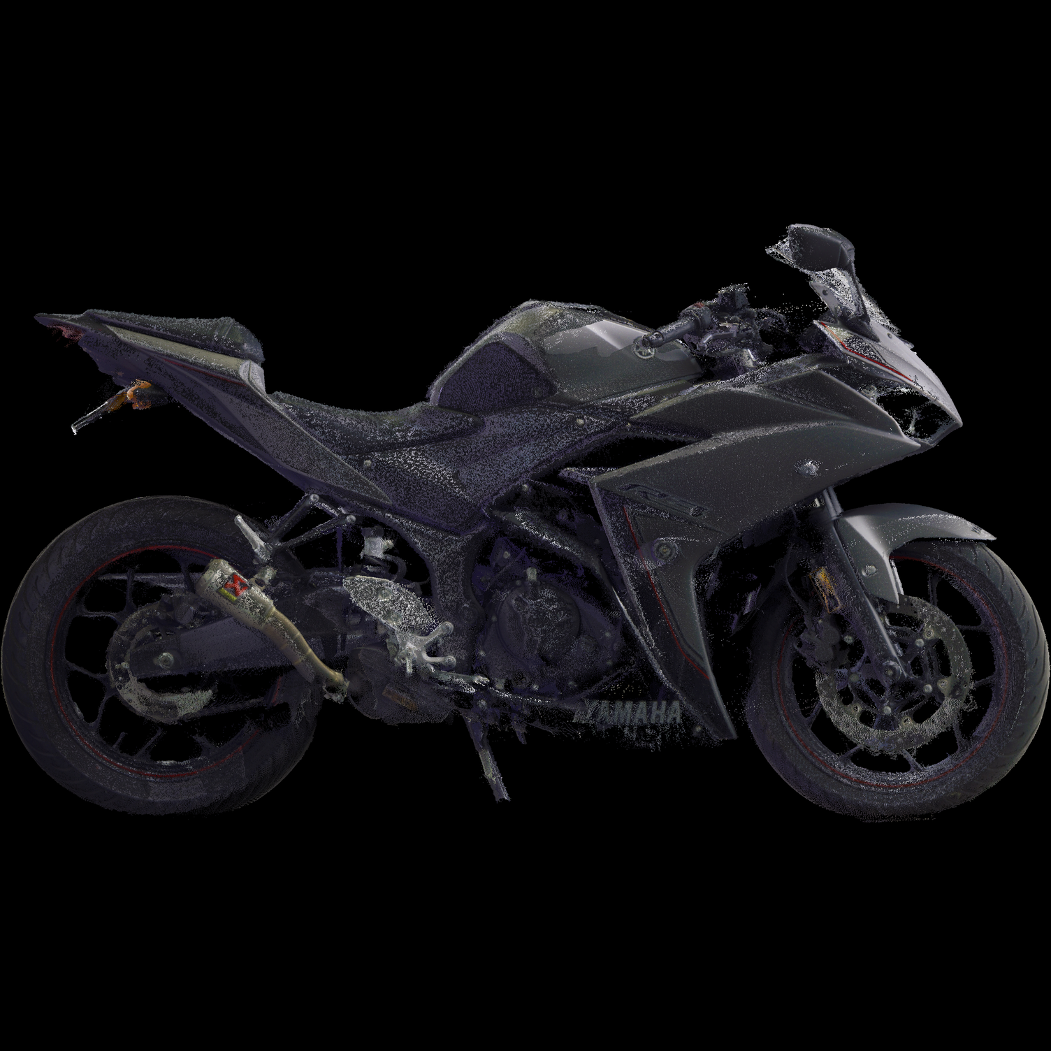 3D laser-scanned point cloud of a 2016 Yamaha YZF-R3. Scan is an exemplar model with no/negligible damage in E57 file format.
